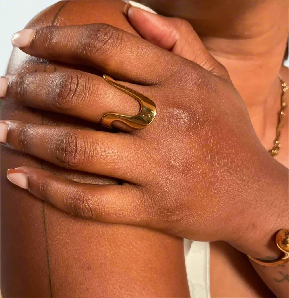 The Big Dipper Ring showcases a refined U-shaped curve with a distinctive dip that contours gracefully to the hand. Crafted from durable stainless steel, it is available in both gold and silver finishes, offering a sophisticated accessory that elevates any ensemble with timeless style.